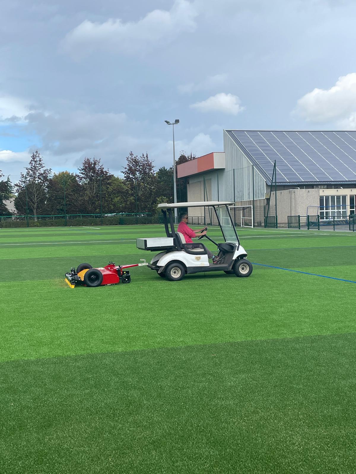 TurfCare TCA1400 - Machine tractée à entraînement par roue pour le nettoyage et l'entretien régulier des terrains en gazon synthétique.