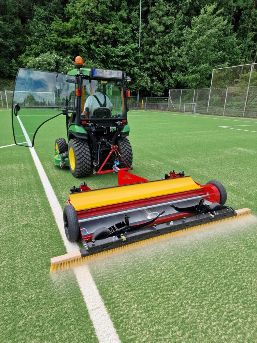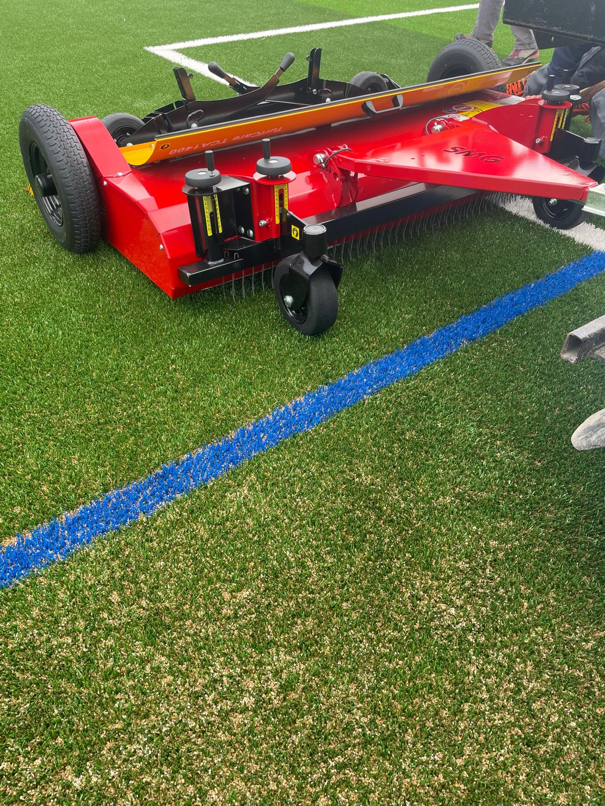 TurfCare TCA1400 fonctionne pour l’entretien de tous les terrains en gazon synthétique avec ou sans remplissage. Son utilisation sans prise de force permet de réaliser l’entretien des terrains synthétique sans risque pour vos installations et dans le respect des recommandations des constructeurs. Ainsi, la TurfCare peut être tractée par des petits tracteurs ou des quads d’une puissance minimum de 18 ch. Largeur de travail : 1 400 mm
