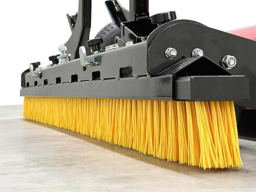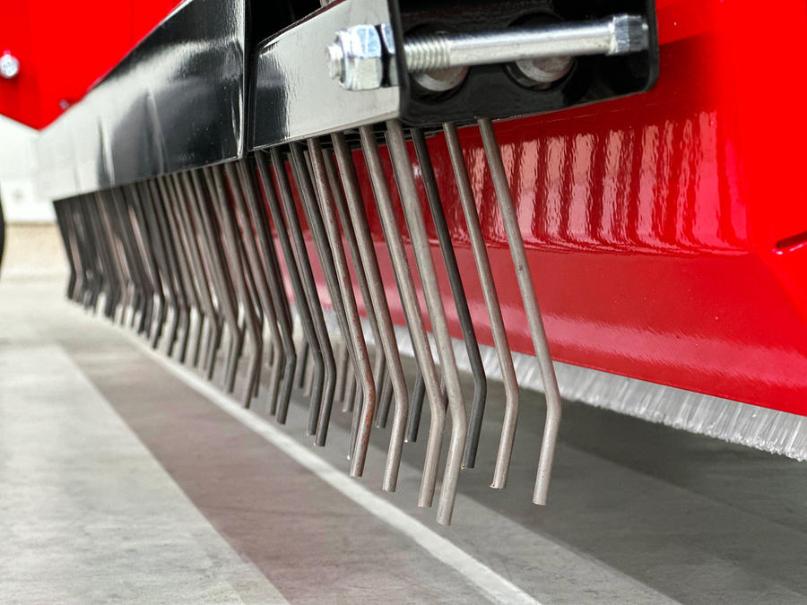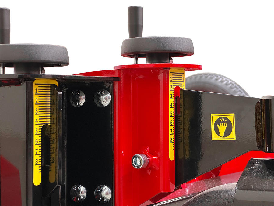 La profondeur de travail du rouleau-de la brosse rotative peut être réglée et bloquée avec précision grâce à deux molettes de réglage.