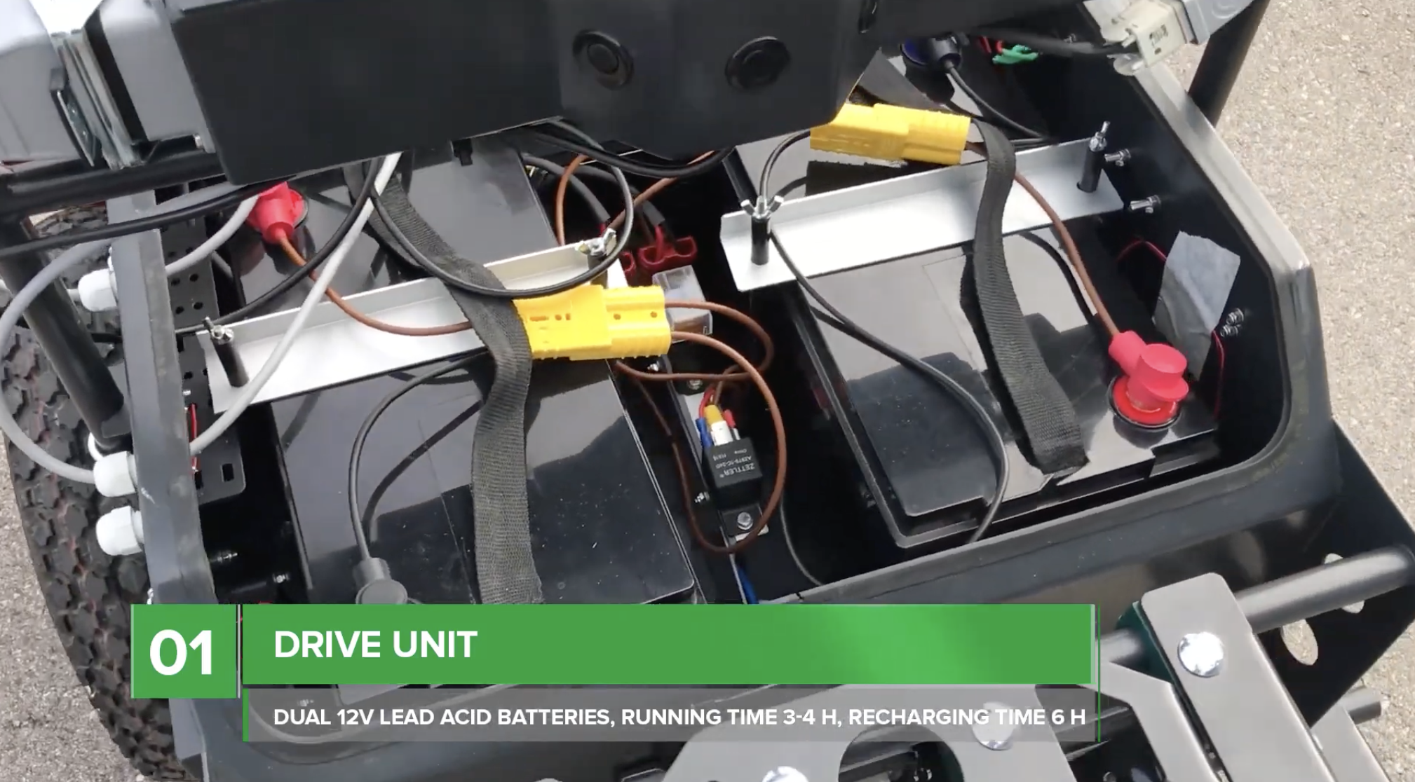 Le TurfRouter est alimenté par des batteries au plomb de 12 V, qui permettent des utilisations de 3 à 4 heures. La vitesse maximale de déplacement est de 6 km/h. La durée de la recharge est de 6 heures. Le modèle TurfRouter est doté de son propre logiciel de positionnement pour la localisation et la navigation qui traite les informations provenant du système GPS/ GNSS et du gyroscope. Son concept de sécurité comprend des capteurs à ultrasons et une protection anticollision à l’avant du TurfRouter. La commande se fait soit à la main ou par télécommande radio La communication pour l’échange de toutes les données de l’appareil/de travail se fait au moyen d’une carte SIM ou d’une connexion Bluetooth ou WLan. Une application permet de lire ces données avec des terminaux courants et de surveiller le TurfRouter.