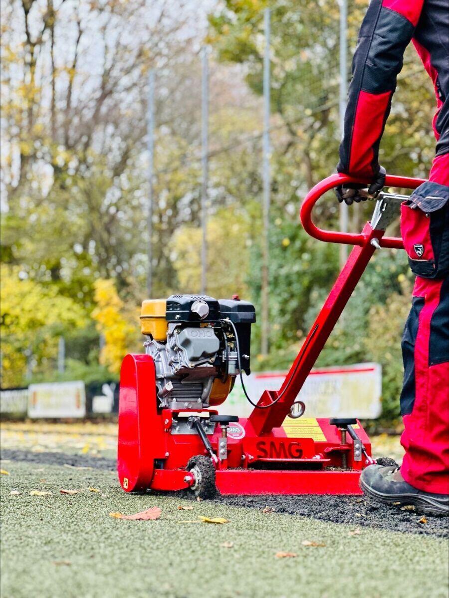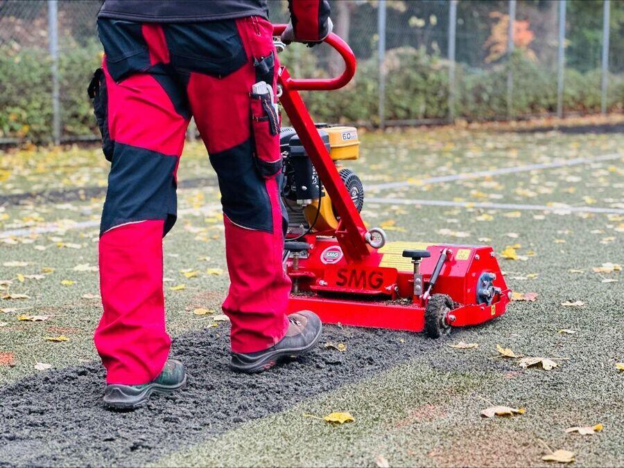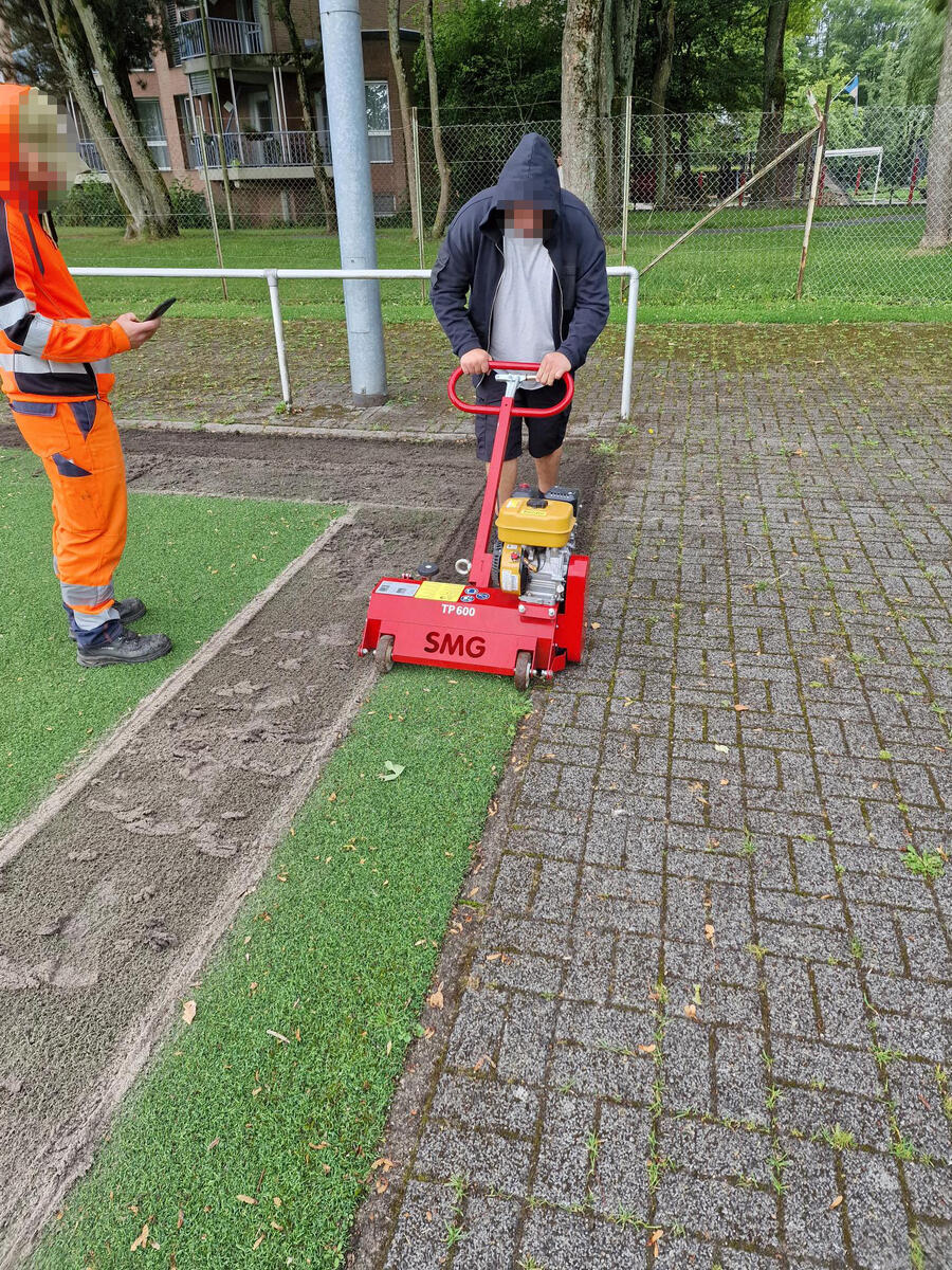 Le TP600 permet d’ameublir très facilement les revêtements en gazon synthétique durcis avec remplissage de sable et/ou de granulés en caoutchouc. Le TP600 est très maniable et convient donc parfaitement aux petites installations telles que les courts de tennis ou les surfaces à réparer de grandes installations. Un arbre à dents flexibles rotatif ameublit les durcissements en douceur et extrait le matériau d’épandage du gazon synthétique.